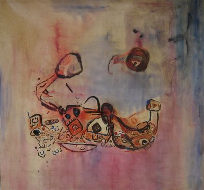 Quranic Verse from Surat al-Qalam* bearing the inscription: Noun wal Qalam wa ma Yasturoun Oil on canvas 152x152cm 1964 Illustrated in Issam El Said: Artist & Scholar (page 77) IS255